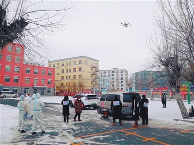 高速公路出口處,無人機(jī)下懸掛的二維碼允許司機(jī)提前輸入個(gè)人信息;在醫(yī)院和疾控中心之間,無人機(jī)應(yīng)用自動(dòng)運(yùn)送緊急藥品和標(biāo)本進(jìn)行疫情防控;在社區(qū)和農(nóng)村,無人機(jī)“空中喊...